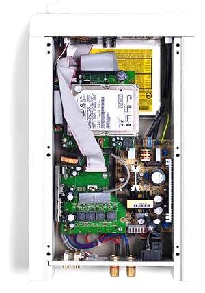 Some giant bell began ringing my belfry with deafening power. This had all the cost-effective makings of a true plug 'n' play PC audio product without a PC or Internet router. The arcus MusicStation runs Wolfsson codecs for high-quality D-to-A conversion; an S/PDIF output to go serious and install the machine as just a server front end into an existing high-end system; and a line-out to retain its preamp functionality but not the inbuilt amplifier (or to subwoof with in the stock one-box context).