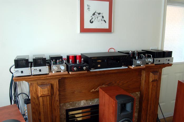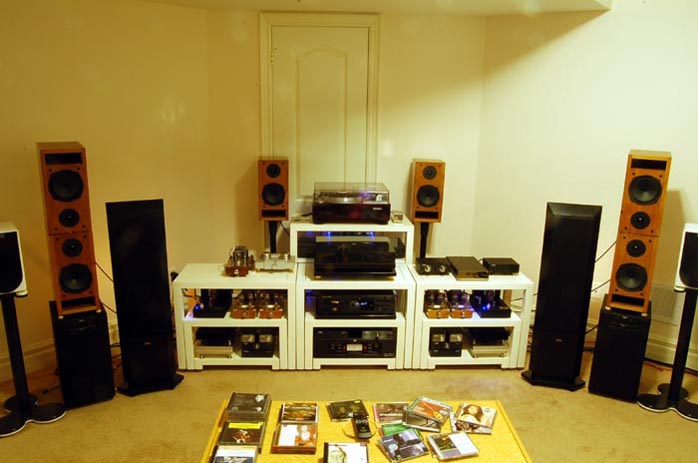 SurROUND 2: My second multi-channel system is built around three pairs of bi-amped stacked Loth-X BS-1 in the front and a pair of single-amped Loth-X BS-1 in the back. A Marantz SA8260 is source again and I have three sets of amps to suit my irrational mood swings: four stereo Trends TA-10; four Kingrex T-20/T20U amps with PSU; two Dared VP-20 and one VP-16 bi-amping the fronts; plus my recently acquired JohnBlue TL66 monoblocks for the rears. (I used to have a Dared MP-2A3C in that role but the TL-66 offered a better tube match.)