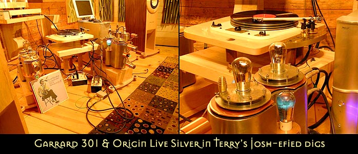 The Origin Live Silver arm sounds 'snappier' than the modded Rega, more accurate to the sound of real instruments. Flat top guitar strings sound more like steel strings - a bit metallic and percussive. The modded Rega made them sound softer, almost like nylon strings. The Silver arm sounds somewhat more electronic than the more romantically balanced modded Rega. Interestingly, the modded Rega is a little more opaque and less detailed but it does PRaT in a more musically convincing manner, albeit less dramatic than the Silver. Don't take Origin Live's recommendation to burn in the Silver tonearm lightly or you'll likely be disappointed. If you don't burn in the Silver tonearm, I doubt you'll ever hear what it's capable of. I mean it: Don't take this burn-in stuff lightly. Listening Impressions Round 3 - Using the Auditorium 23 Step Up Transformer at Terry's Place After burning in the Silver arm further, I thought it sounded really good, marginally preferring it to the modded Rega. Pete felt just the opposite, that the Silver arm sounded better but the modded Rega played music better, with a slight sacrifice to the sound. I think it could go either way for you depending on your audio tastes. The modded Rega has a somewhat romanticized, big warm bassy sound with natural PRaT and lots of spaciousness - a real music maker to be sure and one that many people have found a lot to like about. I liked the extra detail of the Silver arm and its snappy, dynamic and direct presentation, which makes it easier to pick out the guitar lines while playing along with Doc Watson on my Gibson Advanced Jumbo, for example. But I wish the Silver arm was a touch warmer and fuller, handled the notes in a little more liquid and fragrant fashion while maintaining its excellent detail recovery and snappiness. I'd like to banish that last little bit of sheen and sibilance Pete and I were hearing on female vocals, too. Guess what? I got my wish with the Silver arm - and had a big revelation in my understanding of its performance capabilities to boot! |