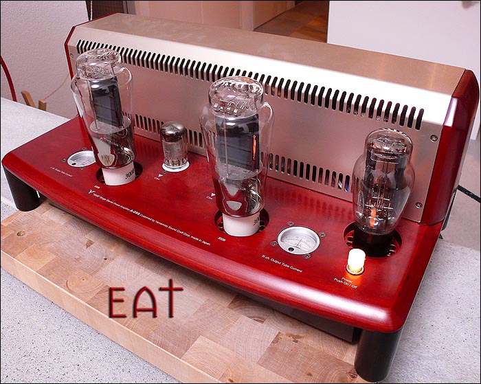 The traditional 300Bs produce limited HF energy and a spectral balance of less brilliance and luster that begins in the midrange. An equivalent lighter bass maintains the tonal balance center but on the cello and the lower piano registers, the effect was similar to lightening an image's black level in Photoshop. The modern 300Bs are more lit up and incisive but also weightier and more damped in the bass. If your system can't resolve the ultra-fine uppermost harmonics, the modern 300Bs will sound sharper, with their sweet airiness diminished.
