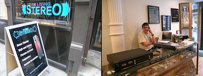 | Stop #4: In Living Stereo. Located on 13 East 4th Street in Manhattan between Broadway and Lafayette and directly across the street from Tower Records, the store's two Steves -- Mishoe and Cohen -- were responsible for having me completely forget about the reportedly stellar WorldMusic selection at Tower's to leave the Big Apple without a single new CD in my backpack. A bunch of good old and new friends more than made up for this oversight though. |