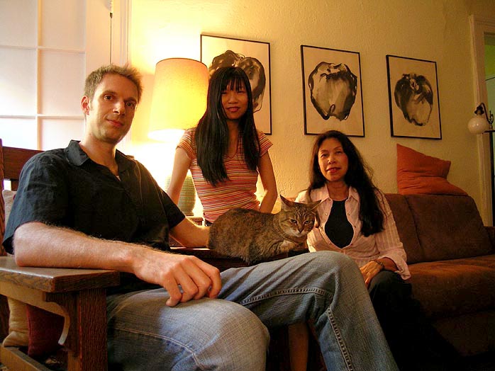 | Stop #5: DeVore Fidelity. Since the day was winding down fast enough to make a visit at the DeVore manufacturing plant in the Old Navy Shipyard fodder for another day, our motley crew of audiophile wankers congregated in John's digs instead where we were welcomed by his pretty Vietnamese wife Mai who mixed Lychee cocktails with the savoir-faire of a trained mixologist. While the groggy boys were doing their thang, she told Ivette that she's working on a semi-fiction novel about post-war Vietnam that combines real incidents and various interviews into composite characters. |