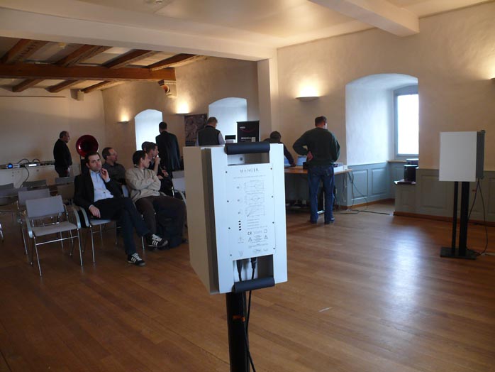 Confession time. I've heard various vintage and modern Quads at numerous shows and never quite grokked their mythical stature. Instead of glorifying midrange purity and microdynamic reflexes as I'd been promised, I got stuck on lack of macrodynamics and insufficient extension on either end. Silently thinking myself a barbarian, I nevertheless plowed along with my 6moons gig undeterred. My awakening came in Greifensee at the hands of one Manfred Stein. |