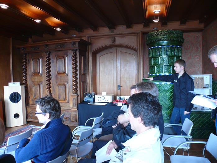 Klangschloss 2009 demonstrated the self-help principle in action. If your country is too small to host an international hifi show like Milan and München can, roll your own. While some of my commentary was critical, it could have reflected an 'early hours' syndrome when not everyone had fully kicked into gear yet. Regardless, from wireless DACs to vintage record changers, Taiwanese value speakers to German spherical horns, this small event had something for everyone as a kind of microcosm of the really big shows. And unlike those, the intimate scale of the aural castle meant that one had time and opportunity to talk, listen and talk and listen some more. Instead of rushing like mad in a hopeless bet to cover it all, the theme here was slow down and smell the flowers (it was a bit early in the year for roses)... |