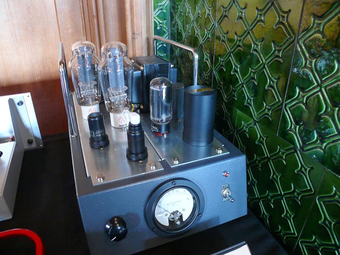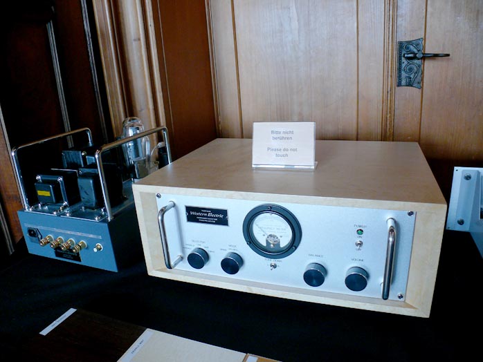 Anchored by Swissonor speakers, this room had many vintage goodies including Western Electric electronics. |