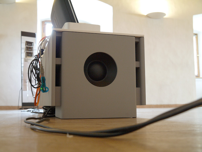 New from Klangwerk but still in prototype form was this new dual 10-inch class G-amplified subwoofer console. With its sidefiring slot-ported drivers, it's a clever bit of contemporary