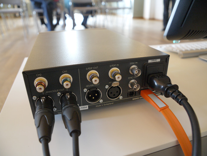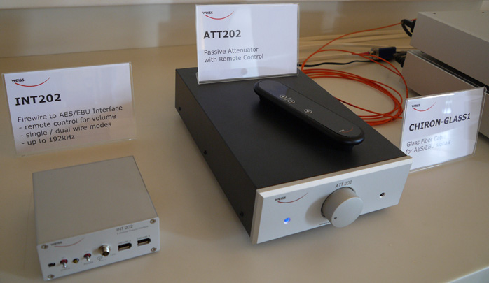 Here are the Weiss INT202 Firewire to AES/EBU D/D converter, the ATT2020 remote-controlled passive preamp and Daniel's Chiron-Glass1 glass fiber cable for AES-EBU feeds.