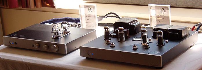 I don't know how they do it but Rogue Audio offers a killer-sounding tube pre/power package retailing at an indecent US$995 and US$1395 respectively. And they're made in the US and not Asia. Rogue either employs slave labor in their Pennsylvania digs or they have squeezed their margin to Kraft Dinner levels to offer these beauties at such low prices. Room treatments were via Echobusters' products. I can vouch for their effectiveness as I own a set. Now that I've had them for several months, I have become increasingly sensitive to the deleterious effects of untreated rooms. Their effect is not unlike time/phase coherent or single driver speakers. Once you get used to them, they're difficult if not impossible to live without. Speakers were Eggleston Works Fontaine II (US$5,500). I heard this system at HE2005 and I was as impressed now as I was last year. Congratulations to Rogue for lowering the entrance fee to tubes and for keeping things domestic. |