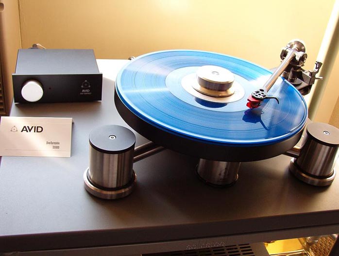 Squeezed in Music Direct's extremely crowded room was not only a quickly moving stack of vinyl (the SACDs and CDs were basically ignored) but a wicked little setup tucked against the window. A pair of Mobile Fidelity OML-1 monitors (US$999) were mated to a Valve Audio Exclame 100 integrated (US$1695) with Avid Diva turntable (US$2500 sans tonearm), Dynavector 10x5 (US$380) and Dynavector P75 phono stage (US$595). Ooooh, Mr. Avid Man, gimme one of those tables, please. The Exclame is a hybrid design with a single 6922 dual triode mated to four Mosfet transistors. Too bad there wasn't anywhere to sit down and listen for a spell. Just a suggestion for next year, guys: get a bigger room. It was positively jammed in there with vinyl-crazed audioheads like yours truly raiding the bins for black gold. Everything was nicely discounted too. I managed to save a few bucks buying here rather than locally or via mail. |