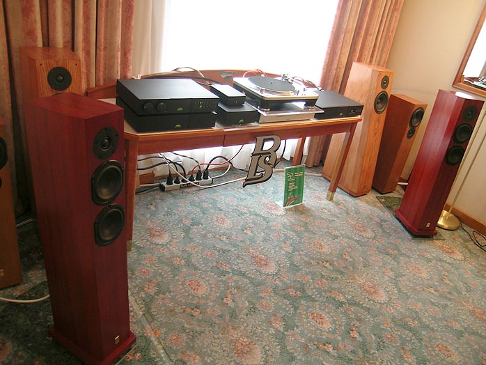 If there is one speaker brand the West should be scared of, it's Usher. Their new Beryllium Series is said to be scarily good and none other than Lloyd Walker bought himself a pair to replace his Kharmas. The Sobieski hotel showed smaller and less ambitious models in keeping with the room size. Prima Luna furnished electronics, Shunyata cables. |