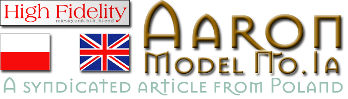 This review first appeared in the February 2009 issue of hi-end hifi magazine High Fidelity of Poland. You can also read this review of the Aaron Model No.1A in its original Polish version. We publish its English translation in a mutual syndication arrangement with publisher Wojciech Pacula. As is customary for our own reviews, the writer's signature at review's end shows an e-mail address should you have questions or wish to send feedback. All images contained in this review are the property of High Fidelity. - Ed. Reviewer: Wojciech Pacula Review system: Go here Review component retail: €3.490 |