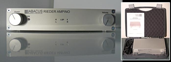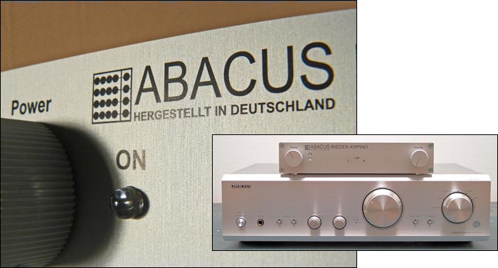 Abacus Electronics Hence the Abacus Rieder Ampino -- its full name proudly marked on the fascia -- gets its own write-up. That's fitting also considering the firm's history. Abacus Electronics arose from Audio Pro Deutschland which, since 1983, had developed industrial electronics, primarily measurement and controls equipment, energy and analog electronics, electromechanics and -acoustics. For nearly a quarter century then, the Abacus Rieder amplifiers have been a known quantity in "Made in Germany" hifi. That they still suffer exotica status is due to - ahem, individualistic cosmetics that have changed little over the years (more about this anon) and very limited distribution in which direct sales play a considerable role. If you've never crossed paths with an Abacus Rieder amp, it's not surprising even though the firm insists that since 1983, its model 60-120 has found in excess of 10.000 homes. Additionally, the outfit, to my eyes, is managed in a very laid-back and, sorry, home-baked fashion. Simply check out the informative but certainly not high-styled home page. Incidentally, besides amps, the Abacus line-up also includes active speakers. |