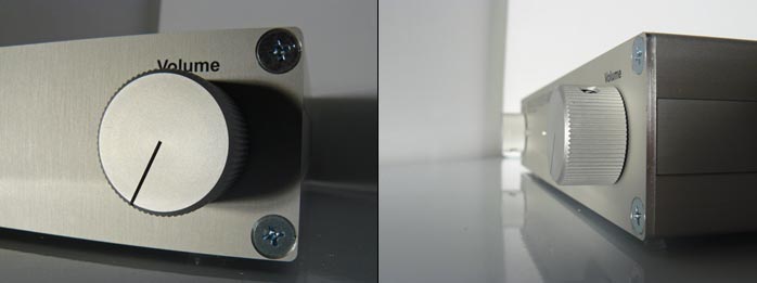 Externals Before we get to the innards and acoustic qualities of today's machine, a take on the outsides. There first impressions were split. The shipping carton is relatively small but housed a yet smaller plastic case in which hid the tiny Ampino with power cord and owner's manual. The amp itself recalls kit electronics. Chassis, knobs, the heat sink jutting out the back, the basic speaker terminals (which mandate further comments) all seem to have jumped off the pages of an electronic parts catalogue. I'm undecided whether the final results look more home-brew or like test gear. But let's recall that Abacus's product portfolio does include test and controls gear. Still, without the Abacus silk screen on the face plate, I'd be more apt to mistake the Ampino for a DIY project. If I called the optics of the earlier NAD and Onkyo machines "understated", what I flash on with the Ampino is "courage". Courage to spend 500 euros on so demure an amp. Courage to incorporate this tiny toy into a serious hifi chain. Courage to finesse thick speaker cables into the minuscule clip terminals while overcoming worries that the heavy wires will turn the small box airborne - or alternately, forgetting about well-worn garden house leads in favor of zip cord (which the maker recommends). Or courage to issue an amp with a protruding heat sink so sharply edged that one can get wounded struggling with the cabling - and which during intensive amp use gets rather more than lukewarm. About the details: The Ampino consists of a tiny aluminum housing of plates and profiles adding to 25 x 5 x 15.5cm (WxHxD). This approaches the cubic volume of my tube amp's power transformer. If you add the two protruding knobs up front and the heat sink around back, total depth is 21cm. The weight shy of two kilo doesn't impress much either. |