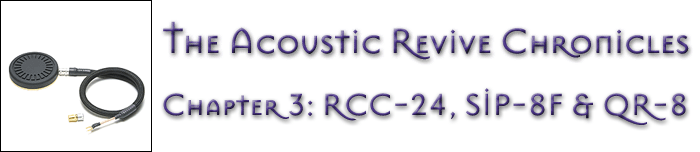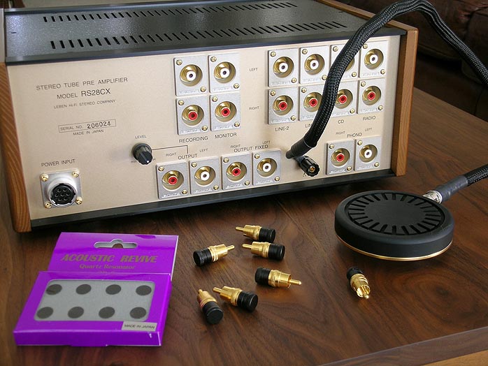 In case you've missed the Acoustic Revive profile I did in Chapter 2 of the Acoustic Revive Chronicles, let me introduce Mr. Ken Ishiguro as the designer behind the innovative Acoustic Revive products. Ken's goal for his products is to reproduce the music on a recording so that it sounds naturally life-like, and "not as though it is being played back over an electrical device." Ken says, "only by listening to natural sound without electronic artifice can you hear what the artists intended." I couldn't agree more! In Chapter 1 I introduced the RR-77 Schumann Frequency Generator ; in Chapter 2 I introduced the RIQ-5010 & RIQ-5010W Quartz Insulators and the QR-8 Quartz Resonators and now in Chapter 3 I'd like to introduce the RCC-24 Ground Conditioner, the SIP-8F RCA Input Shorting Plug and talk to you about some other applications of the QR-8 Quartz Resonators. My beloved Leben RS28CX full function vacuum tube preamplifier (with phono stage) served as my test bed to run the Acoustic Revive gear through the paces for this review. |