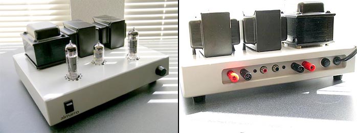 The new Almarro A205A MkII I've had the MkII version of the Almarro A205A for a couple of months now. Its latest incarnation employs the same circuit but Yoshihiro-san says that it has better output transformers for more frequency extension and now 8- and 16-ohm taps. The main difference between the original and current trannies is a narrower EI gap for greater high frequency extension and more accuracy: "The output transformers of the A205A and MKII sport relatively high primary inductance, necessary for better bass extension in a small EL84 SEP or SET amplifier. Especially in triode mode, the primary inductance of the OPT has considerable effect on bass extension, more so than in pentode mode. The size of a OPT is defined by the primary inductance. We decided on a relatively big size for both pentode and triode mode. The EL84 has a smaller input capacitance with relatively balanced amplification character to offer some unique tube qualities for its size and price." The MkII version also has two switchable sets of RCA inputs and a higher-quality set of binding posts than the original. The inputs and outputs are now flush with the back of the amp which makes connections easier. Plus, there's now a removable power cord so you can frustrate yourself playing with different cords. Last but not least, there's a new headphone output for late night listening. It taps into the circuit at the speaker outputs. With all these updates, Yoshihiro-san has kept the price the same as the original - $800. That is very fair indeed. Listening impressions As a friendly reminder to those entertaining the purchase of an A205A MkII, you need relatively sensitive speakers to match with the Almarro's modest output of 4.8 watts or you'll likely be disappointed with the results. Stay at or above 93dB sensitivity and you shouldn't have anything to worry about. |