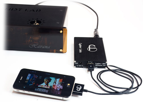 At the Tokyo Headphone Fair 2010 meanwhile, Fostex played the title tune from Time waits for no man. They showed a prototype iPod DAC/headphone amp in a single enclosure expected to sell for ¥70,000. It will turn Cypher Labs' inevitable triple-decker sandwich of iPod, DAC and amp into a twofer though apparently none the thinner. By December 2010, Kevin Halverson of HRT had launched his $199 iStreamer, an async iPod DAC with outboard power supply and Apple device charger. Peachtree Audio had announced their $999 iDac with integral digital-direct iPod cradle run into their 32-bit Sabre implementation with five more digital inputs (2 x 24/192 S/PDIF, 2 x Toslink, 1 x 24/96 USB). The iLeagues were heating up to give consumers more choices.
