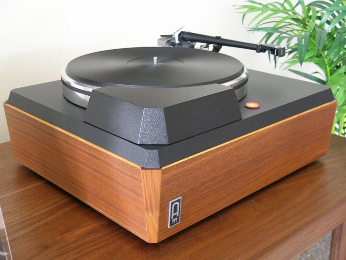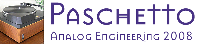 As you would expect, a gear head and hot-rodding mechanical engineer like Mike would have to work the Empire 208 over to tweak its performance. Mike started with a few simple cosmetic enhancements to the Empire 208 like refinishing the base, painting the plinth and belt cover and polishing the perimeter of the platter. "I mounted a Rega tonearm I had lying around and listened for a while. The turntable sounded very good! I started to experiment with damping materials, platter mats and different tonearms with good results. It was at this time that I decided to build a replacement plinth from a solid aluminum plate and machine it to accept an SME tonearm. The result was spectacular and would be named the AE-2008!" I agree with Mike. The result is spectacular. In my Best of 2006, I made a special preview mention of Mike Paschetto's Analog Engineering 2008 turntable: "It's a honey. It's in the same league as the Garrard 301 and Thorens 124 and the beautifully crafted Paschetto Empire 208 is a real-world price winner too. I'll tell you now before the full review comes out that Mike's Empire 208 is highly recommended. At $2495 sans arm, it's a red-hot bargain. Like a finely crafted Navajo rug, Stickley furniture, pre-war Martin guitar or Filson jacket, these vintage turntables are treasures built to a standard that means they'll be enjoyed by you and generations of music lovers to come." "The AE-2008 2008 is a fundamental mechanical and electrical rebuild of the timeless Empire 208 turntable," says Mike, "and the turntable is completely disassembled and any parts that will be reused are cleaned and rebuilt (e.g. the drive motor)." Mike installs new motor isolation bushings; the wood base is stripped, sanded and refinished with Watco Danish Oil; and an IEC power inlet is fitted to the rear of the wood base. The original thin cast aluminum plinth is discarded and replaced with a ¾" thick billet aluminum plinth. Mike finishes the plinth and belt cover with an attractive retro-styled textured black powder coat. The Empire's pop-up 45 adaptor is removed from the existing platter so a new acrylic mat (supplied) can be fitted and the perimeter of the platter is then polished. If you look closely, you can see the beautifully machined motor drive spindle located in the middle of the 3 isolation bushings that is used to change speed from 33 to 45RPM. Mike applies a proprietary damping compound to the underside of the platter to make everything nicely non-resonant. Mike then cleans, inspects and lubricates the bearing and spindle shaft, replaces all of Empire's electronics and installs a new lighted power switch. To keep everything spinning smoothly, Mike also fits a new drive belt. He machines the plinth for the SME family of tonearms and says a 9-inch arm with a SME-style mounting flange will work. Custom adaptor inserts for other tonearms are available on a custom order basis. After all that work, Mike prices the transformed Empire 208 -- now a Paschetto Analog Engineering 2008 -- at what can only be considered a very fair price: $2495. |