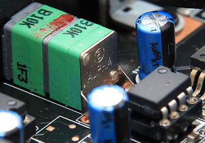 Plenty of Wima FKP2 and FKS2 capacitors create audiophile cachet. ASIO 2.2 support for 64-bit Windows promises bit-perfect output. For that the Essence has its own discrete LED indicator aside from sample-rate lights for all frequencies between 44.1 and 192kHz. Dedicated Alpha volume controls for the 2V/4V preamp and 7Vrms headphone outputs are a unique wrinkle. One can set signal strength for speakers and headphones independently. But who'd use both at the same time to warrant such largesse? |