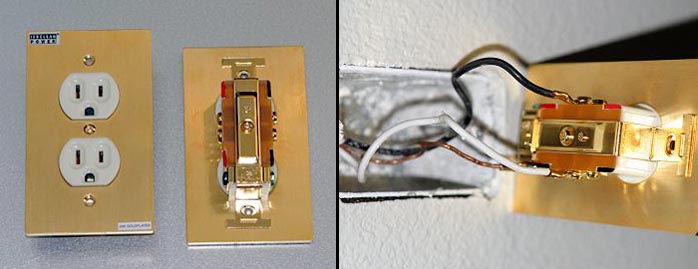 | lower noise floor, a quieter, blacker background, greater delineation between performers and enhanced weight and scale. I wouldn't say the degree of improvement over the Power Clef SE was huge but it was noticeable whether I used it on amplifiers, or digital gear. All that from changing the insulation? Cool. Of all the power cables I have tried over this past year, this one and the $449 Audience powerChord were my favorites, albeit for different reasons. After my review of Isoclean's power conditioning system, Barnaby Ng, the Canadian distributor, gave me Isoclean's gorgeous ICP-002 duplex wall outlet and 106-4P-RF power bar. While I've previously had doubts regarding audiophile wall outlets, I have had good success with Hubbell hospital-grade devices which I installed on a dedicated AC line for my system. I am not sure if I have ever noticed a sonic improvement but it does allow me to sleep soundly at night knowing I have an AC supply fully sanctioned by the Audiophile Polizei. Isoclean's outlet looks just like any other wall socket with the exception of the heavy non-magnetic wall plate and the gold-plated, hand-polished prongs and mounting strap. Mounting the outlet, as you can see in the photos, is no more difficult than any other receptacle. The only difference? The enclosed lugs are crimped or cold-welded onto the bare wire ends. It took all of 15 minutes to install. If you are not comfortable with such tasks, call an electrician. |