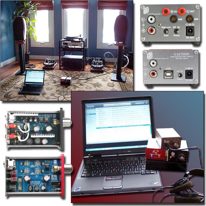 | The Big Joe is a 16-watt single-input integrated whose volume is controlled via a nicely machined knob on the chassis front. There is one set of RCA inputs on the rear along with two sets of speaker connections that only accept banana-terminated cables. Also on the rear are small toggles for power on/off and gain adjustment. The Big Joe can be operated as a power amp via an internal switch to mate with the Tube Head Preamp (yes, it's got a vacuum tube), which then handles input and volume functions. Cool. The Battery Cute features volume and headphone output on the front panel, a pair of RCA inputs, power on/off toggle and gain adjustment on the rear. Although not mentioned in the manual, the Battery Cute is permanently stuck in charge mode regardless of the power switch position and should hence not remain plugged in for more than 24 hours. The Cute requires 8 hours to fully charge. US distributor Jack Ker indicated that updated documentation was forthcoming. The Spitfire DAC features the usual status indicators on the front while the rear accommodates a pair of RCA outputs and Toslink and S/PDIF inputs. The innards consist of a Burr-Brown PCM1793 24-bit/192kHz DAC, a CirrusLogic CS8414 96kHz receiver and a Burr-Brown OPA2604 opamp in the output stage. The Spitfire clearly trounced the Dac in our $70 no-name DVD player but was nowhere near as good as the Minimax. Consider the Spitfire a decent, inexpensive upgrade that's ideal for budget CD/DVD players and suitably equipped portables. The Fubar was more or less identical to the Spitfire but replaces the latter's Toslink and S/PDIF connections with a USB port, which I hear may be a superior digital connection. Check out Empirical Audio and Wavelength Audio for further insight. Empirical's Steve Nugent is one of the trailblazers currently exploring computer-based audio as is Wavelength Audio's J. Gordon Rankin. Both sites have plenty of interesting info. Do check 'em out. The Fubar contains a Burr-Brown PCM2702 16-bit 44.1/48kHz DAC and BB OPA2604 opamp in the output stage. |