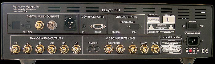 Bel Canto's PLayer PL-1A adds a small but important wrinkle to this scenario. What if your primary interest were audio? In a strategic move guaranteed to appeal to audiophiles such as yours truly, John Stronczer decided to issue a special "audiophile version" of his original $8,900 video-centric PLayer. Omit the cross-color suppression, DCDI adaptive motion, film mode and H/V sync circuitry. Omit the state-of-the-art Faroudja engine which loads down the power supply even when not in use and thus generates noise. Omit four front panel buttons thus rendered obsolete. Subtly tweak the remaining circuitry for the best-possible audio performance which since has replaced the original BurrBrown I/V conversation and balanced output driver amp chip with one optimized for audio use. It also appears in the firm's PRe2 two-channel preamp and is said to sport ultra-low distortion figures measurably superior to the earlier video-optimized chip that electrically measured the same and came from the same house of BurrBrown/Texas Instruments. Implement a massive +/-5V supply rail for the monster crystal oscillator that's described as going beyond regular consumer audio designs to be more akin to ultra low-noise transmission broadcast architectures.