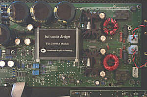 Corporate culture at the top Since its year 2000 introduction, the eVo amplifier circuitry of Bel Canto Design's chip-based digital power processing by Tripath has garnered enviable press. Make that enviably comprehensive. Without exception, said critics (this scribe among them) have touted its performance as fit for the highest floor of the SS Corp.'s downtown high rise. The overall consensus? That it lives behind one of the more modestly frosted doors without sandblasted detailing. One that pronounces in still hushed tones "You've got the smarts, cred and work ethics to belong here, junior. But where's the discretionary income to impress the old-timers with? The de rigeur $2,000/pr hand-crafted Italian leather loafers and matching Saville Row suits? Where's your white Berber, granite wet bars, mahogany paneling and the Asian designer secretary? Smell them thorns, bubba. Charge like the big boyz do." |