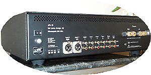 Rear panel connectivity includes 4 inputs (1 balanced, 3 single-ended), 1 tape loop and 1 buffered pre-out for possible passive bi-amping with an eVo 2 or 200.2 or a second-zone system. Due to negligible output impedance common for solid state amplifiers, damping factor is given as greater than 100.