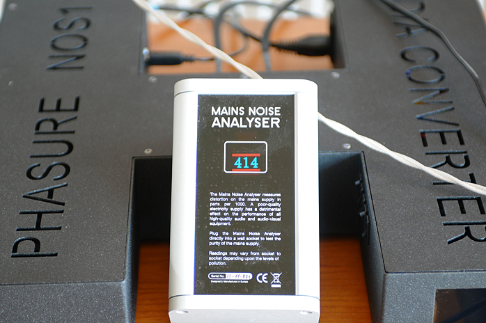 At the last Milan show we met with IsoTek’s Keith Martin. We had some tea and lunch and as a result of various conversations were eventually sent a surprise package with some of his latest products. Next to IsoTek Keith also runs Blue Horizon. The former focuses on power products, the latter on more general audio accessories. In our package we found—among other things we will report on separately—a so-called Mains Noise Analyser under the Blue Horizon brand. A clear aluminum casing of 17 x 10 x 7cm has a black semi-translucent fascia with a 3 x 2.5cm window for an LCD display. The only connection to the outside world is a C2 shotgun connector. Use is as simple as blinking an eye. Plug the provided mains cable into a wall or other outlet. Then read the number displayed on the small screen and listen to the noise emitting from the small single driver firing out the back of the device.