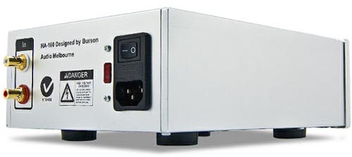 The HA 160 thus showcases all of Burson's in-house solutions which are available also to DIYers and OEMs. Its class A circuitry is packaged in a 6 mill clear-anodized sandblasted aluminum case to abscond with large conventional heatsinks and turn the entire enclosure into one. This allows for a higher idle current, richer class A bias and lower distortion. The substantial panels are also meant to combat microphonic resonances. The differential input stage eliminates signal-path capacitors, the push/pull output stage runs two pairs of A1930/C5171 Toshiba transistors for up to 2 watts of speaker-level power. There are two large Nippon ChemCorp. 63V/10.000uF storage capacitors and 14 smaller silver mica caps. Core specifications include an i/o impedance of 47K/5 ohms respectively, frequency response of 5Hz to 35kHz (-0.3dB/-1dB), S/N ratio of >98dB, channel separation of >70dB at 10kHz, power dissipation below 10 watts and output power of 650/800mW into 300/60 ohms. Weight is 6kg and dimensions for the case are 280 x 110 x 44mm. |