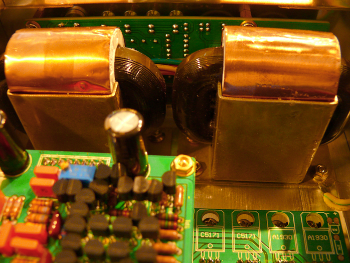 Discrete power transformers for digital and analog circuitry. Output transistors in positions C5171 and A1930.