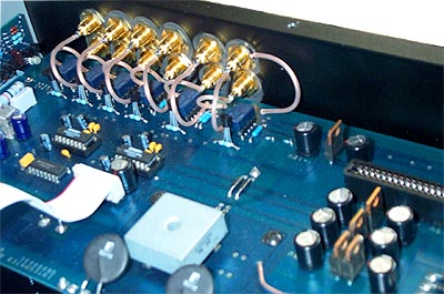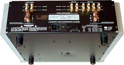 Rather than merely bolting a clear-anodized aluminum face plate to the front, the beach boys at Coda went through the considerable trouble of redoing the heat sinks in bead-blasted alu naturel as well. They also threw in a non-magnetic/non-resonant silver top cover and fastened it down with stainless low-head screws to complete the all-silver makeover. Some beach bums, eh? But then, Sacramento is rather land-locked. Surfing is accomplished in the imagination, not on real waves... |