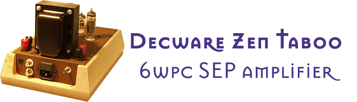 | Steve Deckert -- no, not the BladeRunner -- has achieved what many would consider an ambitious dream: fame and low-gain success in the audio underground without playing the review or advertising game. His Decware Zen amps are legendary among micro-power devotees. They don't exceed $1525 for a pair of monoblocks and start at $678 for a stereo amp. What's more, they use the commoner's EL84/6BQ5 tube. It's hot-swappable for the Svetlana SV83s, a Russian military/radar-use equivalent of very wide bandwidth. So repeat after me - these amps are small, they're light, they're cheap, they're apparently anything but exotic. Why should they be legendary? Ah, grasshopper - precisely because they're all of these things and manage to sound stunning (at least based on 100+ owner reviews). The Decware mystique is one of direct interactions between designer and customer, in the best Old World tradition of artisans. With one critical difference, mind you - it's everyday chaps and lasses that are served, not blue-blooded deep pockets. Part of the intrinsic affordability of Decware goods is Deckert's head space. He's not into glitz. Another part is that his amplifiers don't exceed 12 watts in mono while stereo power is limited to between 2 and 6 watts. Once you say bye-bye to the star power of 300Bs, 2A3s, 45s, that's bye-bye also to their hefty salaries. Now say sayonara to high-output 845s and 211s. That's also sayonara to monstrous transformers and insane rail voltages. Easy does it. Hello Chuang-Tzu. Almarro of Japan too has embraced the lowly EL84. It's their weapon of choice for the most affordable Almarro A205A integrated. Or own Jeff Day loved it so much, he bought it after the review. He's currently similarly tempted -- albeit at far greater financial expense -- by Tom Evan's new and apparently stupendous Linar A amp. It also uses the EL84. Paul Candy meanwhile loves his Manley Labs Stingray, another EL84 design. The Zen Taboo straps its 6BQ5 in pentode, not triode. This forgoes yet another perceptional advantage to be taken serious as a tube amp. As a pentodist, feedback naturally becomes vital to maintain linearity. Untamed pentodes often suffer a rising frequency response which, when unchecked sans feedback, can get hot and zippy. Of course, feedback too has gotten a bum rap from the direct-heated triode fans. There are thus plenty of conceptual disadvantages to the Zen Taboo. After 20 years of doing this, Deckert has never yet met a pentode he prefers over a triode. With this amp, he finally calls it even though. Except for power. The Taboo triples output over its petite Zen Triode sisters (of which more than 1150 have sold to date). |