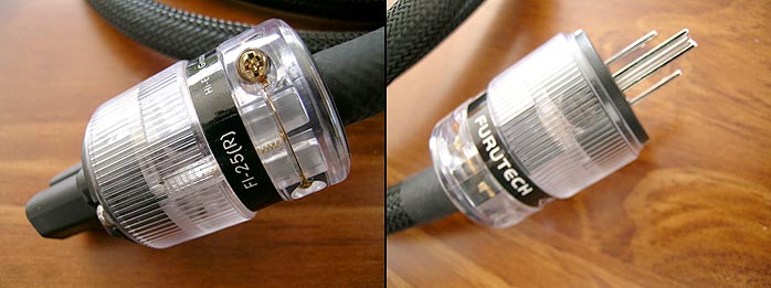 | If I had to limit myself to one key term whereby to paraphrase the essential Furutech quality, I'd opt for relaxed ultra resolution. Hidden inside that seed phrase hides that whenever you hear more, you enjoy a simultaneous sensation of increased size. Things sound bigger. Are they really bigger? Or is the space taken up by the apparent soundstage simply more densely filled? It amounts to the same in the end. Hence I'm content to call the Furutechs admirably big of sound. One last noteworthy bonus is that when you light the wick on SPLs, there's no funny business of compression, smearing or skewing kicking in. The sense of big simply gets bigger and bigger and bigger - until your ears give out. That's of course as it should be. Still, the apparent nonchalance and ease whereby this dynamic scaling is handled by these cables does seem somewhat out of the ordinary. Ravers and head bangers take note then. One last comment has to go to the finish of the connectors, particularly the lockable RCAs and bananas. Tolerances are spot on, the stuff goes in smoothly, locks and unlocks without any undue play to invite knuckle-drag idiocies and peppery curses (to spell it out, the kind of RCA locks you can't remember tightening all that much only to not get loose afterwards despite your vein-popping grip of steel). There's something luxurious and silken about the Furutech connectors. Like fine Swiss watches. This stuff also routes and drapes easily. If it didn't sound good, I'd not mention it as something that wouldn't matter then. But since it does perform to a very high standard, getting the tactile satisfaction and pride of ownership bits thrown into the bargain is worth mentioning. |