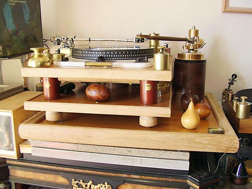 | Postcards from the edge To continue the tradition I started in Part 2 of the Garrard Project, I want to share with you several of the Garrard projects that readers have shared with me. Parisian Anthony Hind sent me a note saying "You may be interested in this slightly unusual Garrard plinth which was largely inspired by your articles." Anthony's Garrard Project came out beautifully. The arm that you see to the right in the photo is made by German audio artisan Robert Fuchs. You can read all about Anthony's Garrard Project here. Well done, Anthony! |