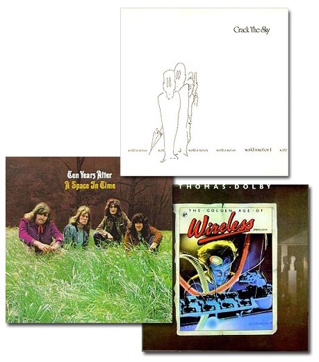 | Crack The Sky's 1983 pressing of World In Motion [Criminal Records PRT 1696] responded as well though a little differently. The sound of this LP has been a little on the scratchy side. Not record scratchy as in click and pops but more akin to a scratchy pre-cold throat. There's some glare, the sound is brittle and timbres seem pushed up a little toward the treble. After its cleaning, the scratchy throat was gone, the timber was restored to neutrality and the sound was much less brittle. Tonal colors deepened too for a much warmer overall presentation. After that I grabbed one of the nastier records in my collection; Thomas Dolby's The Golden Age Of Wireless [EMI ST12271]. I bought this 1982 recording used for $1.50. This LP sports the kind of icky sound I'd always attributed to dirty records -- lots of surface noise -- as well as the bleached-out brittle sound of the Crack The Sky LP. If I was already a little giddy, I think I may have heard myself gasp as I listened to this one now. Though I'd cleaned this one before on my Nitty Gritty, the noise was further reduced by - oh, 80%. As previously described, the brittle bleached timbres were replaced with real color and density. While I know rotational speed was unchanged, the music sounded subjectively faster and more rhythmic. This had to do with increased transient speed and microdynamic detail as the LP, again, was injected with an added dose of life. |