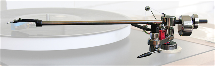 GH 228 Export The Hadcock GH 228 Export tonearm is one of two different arms produced by Hadcock. The more pricey GH 242 (reviewed here by our own Edward Barker) shares the same damped stainless steel arm tube but the 228 under review has a pivot-to-point length of 9 inches as compared to the 242's 9.6 inches. Everything else is said to be the same including the required 5/8-inch mounting hole. Within the GH 228 family, however, there are three different options for the buyer. The $799 GH 228 Export comes wired with generic oxygen-free copper wire. This is the one I received for review. But there's also the GH 228 Integra wired with Incognito brand wiring and priced at $1099. At the apex of the 228 family tree sits the GH 228 VDH Silver, available on special order. This one's wired throughout with Van Den Hul silver wiring and includes a special Super Silver phono cable for $1499. Hadcock represents that all 228 arm tubes are interchangeable as are head shells. All one need do is avail oneself of the Allen wrench included with the 228 and said interchange is easily accomplished. Hadcock does admit that setup is a little more difficult than with a fixed pivot arm, but I'll get to the particulars of the unipivot momentarily. For now I'll say that it wasn't all that unpleasant. The Hadcock comes with a 1-year warranty against defective workmanship and, as I found out through personal experience, advice via e-mail from the good folks at The Cartridge Man flows freely and is promised to all Hadcock customers. |