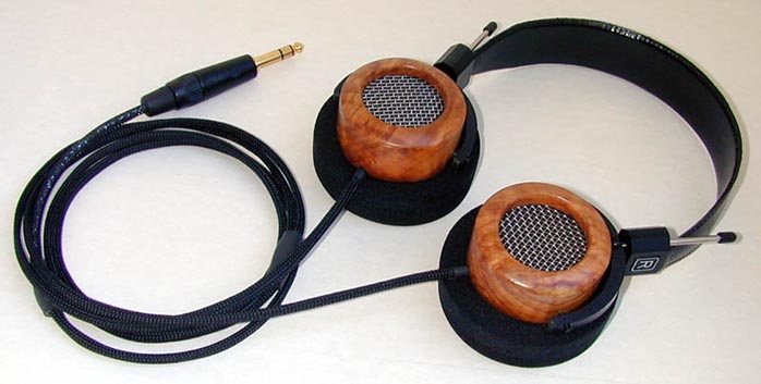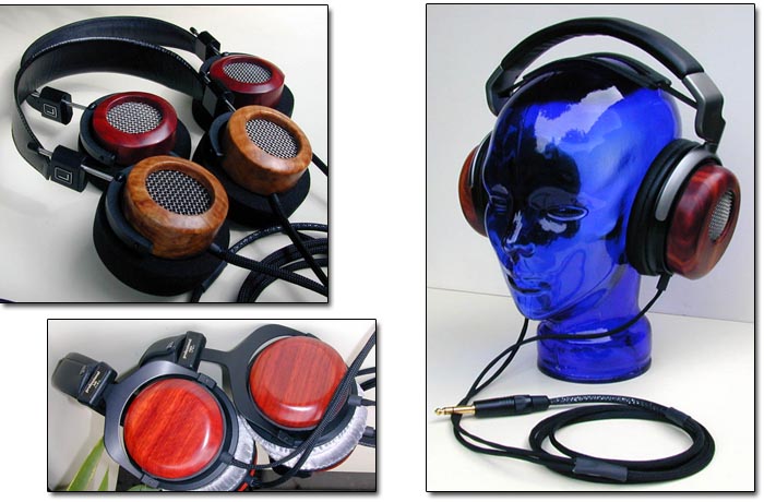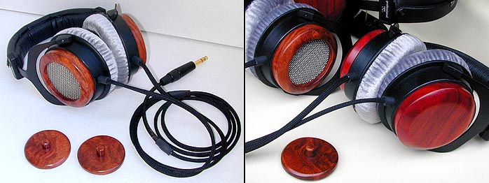 The next two concoctions I received in one shipment. They consisted of a Beyer DT770 modified with wooden enclosures and re-cabled with a copper/silver hybrid known as BlackMax plus an equally modified set of Grado SR225s. New Grado pads called C-Pads were also included for evaluation. First off, Larry's woodwork is simply outstanding. It really is beautiful and pictures simply don't do it justice. Larry offers various types of woods depending upon your preferences. Regarding sonic improvements, Larry states that sonic upgrades are more attributable to the re-cabling than the wooden enclosures but many users have reported a more accurate sense of | |||||||||||||||||
