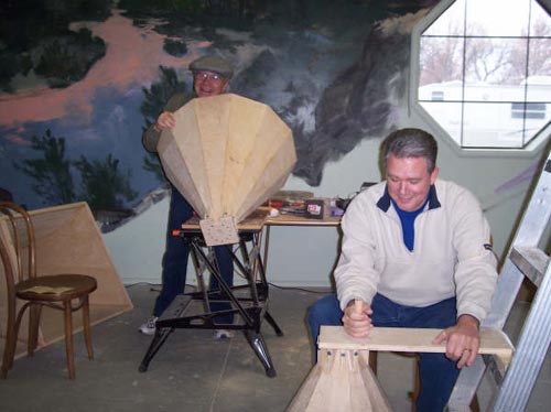 Pete now says, "In retrospect Stephæn was right. It is never easy. One thing that made the Po’ Boys difficult is that we chose to construct the curved surfaces with planking. The planking lumber is never perfectly straight so there were surface irregularities that we spent beaucoup hours and elbow grease sanding. Also, all those curved horn sections need to have their ends made plane to mate with the adjoining section or for a clean horn mouth plane. So, in general, every time Pete says it will be easy, just duck your head mama and run for cover with serpentine movements." |