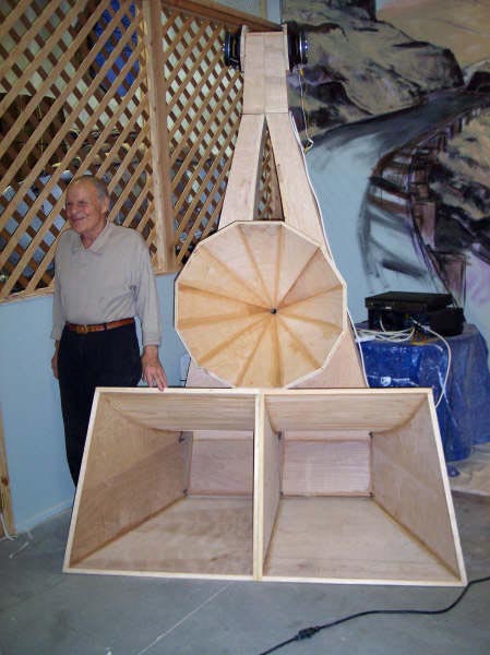 Bill Van Winkle (blind piano restorer and the BBBA’s designated babe-magnet®) and I mount the bass drivers