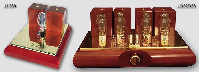 JJ's own 239 single-ended amp outfitted with a 2A3-40 makes 10 watts with an anode current of 80mA. The JJ 322 parallel single-ended dual-mono stereo amp or integrated with 300Bs can be had as the 323 with 2A3-40s for 22wpc.