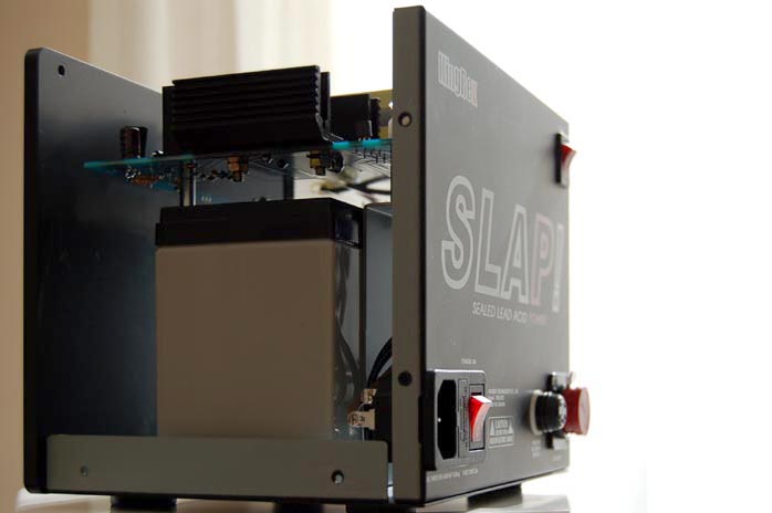 The higher power Battery powered! The very words sound like abracadabra to certain audiophiles. To them, getting off the grid means getting off the hook of expensive power conditioning and power cords while embracing the handsome bonus of power purity. For obvious reasons, battery power is more difficult to achieve in power amps than preamps. Yet with all the rave reviews stirred up by Jeff Rowland's Model 2/BPS 2 in the 90s -- and more recently Red Wine Audio's Signature 30.2 and 70.2 -- users of low output power, 12VDC operated Tripath-based amps have been craving battery power for a long time. Enter SLAP, the witty acronym for sealed lead acid battery power supply from KingRex, the manufacturer of the Tripath-based T20 and T20U. |