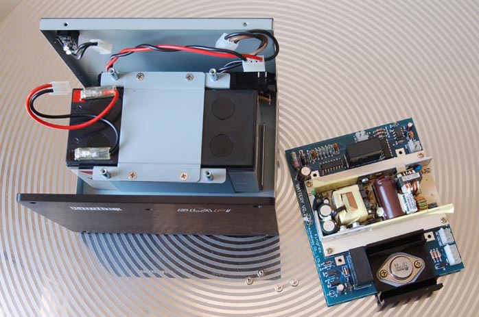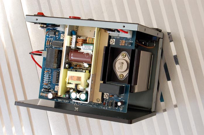 Make no mistake, a linear power supply can also be designed to fulfill "5 to 10 times of what is required to meet normal demand". But when we're talking about a low budget Tripath amp, the major prohibitive factor is cost. Let's refresh our memory. The Tripath TA2020 chip inside the T20 operates on 8.5VDC minimum and 14.6VDC maximum. The SMPS of the T20 is rated at 12VDC/3A. The optional $170 PSU linear power supply, which outputs 13VDC, incorporates a 48V toroidal transformer coupled to a full-fledged regulatory circuit of eight audio-grade aluminium electrolytic capacitors of 5 x 2,200uF (AC input) and 3 x 4,700uF (DC output stage). The current amperage is still restricted to 3A due to the 48VA transformer (48VA = 16V x 3A, which is maintained at 13V/3A output by the regulator IC). Surely they could have gone overkill with a 96V (16V x 6A) transformer and doubled up the caps but the chassis would have been at least double or triple the size. Now the SLAP is triple the size. Let's see what it offers. It houses a YUASA NP7-12 sealed lead acid battery rated at 12V/7AH designed to yield instantaneous maximum current of 105A without pulse noise. Now that's a lot of amperage. Is that overkill? Definitely not from an audiophile standpoint. What's more: breaking free from the grid means complete isolation from voltage fluctuation, radio frequency interference and electromagnetic garbage that could be traced all the way back from your home appliances to substations and power plants. That's what every audiophile loves to hear. |