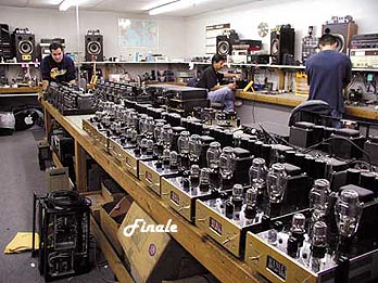 | But back to the buffered volume control: When using the variable output depressing the line button to the lower left of the volume control selects either the phono output or whatever is connected to the line input. The source signal then goes to the Noble potentiometer volume control, then to a high-current low-impedance vacuum tube White Follower output and to the variable outputs. EveAnna's preferred way to use the Steelhead is through the variable outputs to drive amplifiers directly. Directly below the volume control is a button marked sleep that toggles the Steelhead between its normal operating mode and a low-power sleep mode. In sleep mode, there are no operating voltages except to the CMOS system control logic powered by a separate small mains transformer in the power supply. To the lower left of the volume control is another button marked sum. When toggled, it combines the stereo into a binaural signal that routes to the variable outputs only (i.e. it doesn't work if you use the fixed outputs). According to the Steelhead's manual, this means that "monophonic or the lateral-only modulation content of your stereo records may now be heard. True mono may be experienced if the feed to one of your two loudspeakers is cut." |
