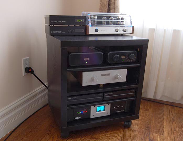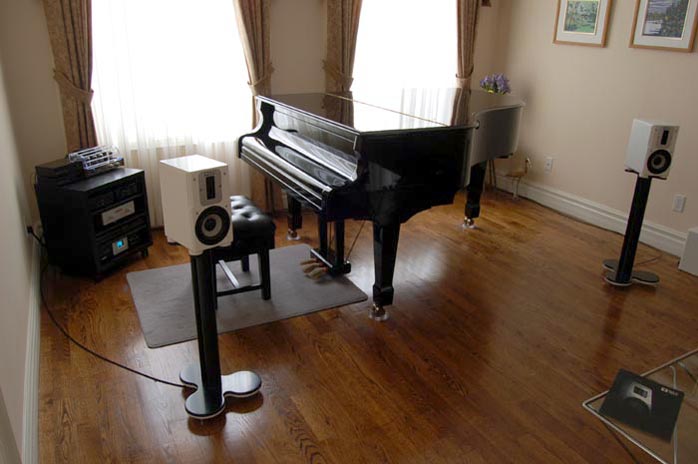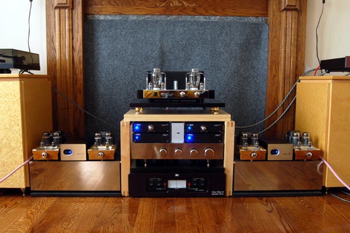 Daniel elaborated further: "Although the F3 of 45Hz remains the same for the Sapphire as for the Ruby, the Q-factor over the whole cone pistonic range has been improved. I expect you will distinguish the tighter bass response during your audition. I also cut down the high frequency response between 6 and 9KHz a bit so the HF reproduction may not seem as energetic as the Ruby's. If possible, I strongly suggest to bi-amp the Sapphires. I sincerely believe bi-amp drive will net significant sonic improvements." In the spec and info sheet Daniel emailed, it states that although the Sapphire is a "monitor-grade miniature speaker, two mid-power amplifiers can be configured as a bi-amp playback system for cost savings." I have tried my NuForce Reference 9s and Reference 9SEs with the Maximus-Monitor for truly stunning results. I also have another possible bi-amp contender, four Restek/Thorens monoblocks capable of doing 70wpc at 4 ohms each. That should fit the mid-power criteria. But curiosity brought out worse in me yet. |