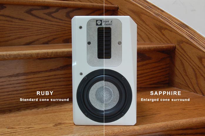 Mark & Daniel have truly found their winning formula and within two short years introduced ten models from miniature bookshelf monitors to a 280 lbs floorstanding flagship - all in their favored 2-way configurations. Recently two members have been added to the family called the Maximus-Sapphire and Maximus-Topaz. The Maximus speakers, by M&D's definition, are bookshelf loudspeakers of sufficient SPL output to match or exceed that of medium-sized floorstanders by the competition. To simplify the naming conventions, let's just call the new 'uns Sapphire and Topaz. To be honest, I was taken by surprise when Daniel broke these news. Two new models in the same enclosure size and at the same time? Would they better my Ruby? Apparently both are modifications based on the Ruby platform. The Topaz even adopts the same enclosure. I did have my concerns. |