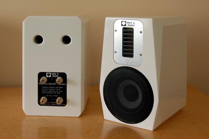 | Unlike a cone or dome, AMTs produce sound waves by squeezing air with pleated diaphragms that fold like accordion bellows mounted vertically with coils and magnets on both ends. Larger diaphragms and improved displacement efficiency translate into an air mass movement 5 times larger and a propagation velocity 5 times higher than that produced by diaphragmatic push/pull actions of cone or dome tweeters. Using the Mark & Daniel Maximus-Monitor as an example again, its DM-1 tweeter sports a diaphragm area more than 60 times that of a 1" dome while its attendant mass is less than 20%, with a wide bandwidth of 800Hz to 22kHz. Other derivative AMTs have been developed by high-end speaker manufacturers like Adam and Elac, to name just a few. It is fair to note however that (A) the crossover points of these German AMT-based two-ways never drop below 2kHz, and (B) that even though the aforementioned Apogee crossover points descended to 800Hz or 600/700Hz, they could not match the same bass potency of the M&D speakers. While the crossover frequency is pivotal in this philosophy, you still need balanced power on both ends of the pivot to approach the 50/50 front and rear axle balance of a super sports car with all-wheel drive. While the larger and more expensive Apogees certainly did achieve that effortlessly, my smaller cheaper versions fall short in the lowest octaves. |