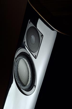 | Make no mistake, the boat-tail shape of the chassis is pretty unusual and the taper from top to bottom ensures that there are no parallel surfaces at all. Then take a look at the drivers: the famous Accuton/Thiele ceramics. Mårten Design is one of a very few speakers builders who uses a full complement of Accutons across the audible range. Others like Kharma and Avalon don't use their bass units. And there are audible benefits to using Accutons in the bass. When successfully integrated, the qualities that make these drivers special extend seamlessly all the way down the spectrum. The crossovers in a three-way system are pretty critical and it's good to see that Mårten takes them very seriously indeed. Hand-wound inductors and Mundorf capacitors for example. This attention to detail stretches to the biwired WBT binding posts, which connect to the drivers via the astonishingly expensive and high-tech Jorma Design cabling, something designer Leif Olofsson chose after initially specifying Valhalla. A single port fires cleverly down through the stainless steel tube. Know what though? I don't like the WBT posts' position. They insert from below. If you have heavy cables, they will fall out. Sure you can hook up some safety wire but I end up putting the connectors through the horizontal holes. The overall effect of the speaker is slim and superbly elegant. There's a touch of the Great Gatsby. They look like they cost a fortune and there's a touch of a bygone era to them, what with the deep shine of the carbon fibre and the luster of the wood trim (available in four different woods - cherry, oak, maple and birch). Oddly for a speaker of this quality, the other two feet are not adjustable so leveling them is almost impossible without using shims. Are we crazy here? These speakers cost £14,500 and you can't level them? I hope Mårten Design will look at this issue urgently. They do provide small jumpers of Jorma Cable issue for those preferring to single wire. The speakers themselves don't have grilles but the Accuton drivers sport metal grills to protect the vulnerable ceramic membranes. Both mid and high drivers also have Bybee filters though to contain costs (what?) the Bybee on the bass unit had to be been dispensed with. |