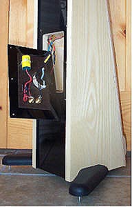 The minimalist three-part 1st-order network is mounted to the back of this sub-baffle and faces a completely sealed chamber to -- again in Meadowlark tradition -- isolate its parts from the deleterious effects of being bathed in high-dB driver rear-energy vibrations that make any speaker's cabinet the loudest part of the room. There's an overspec'd 450V Auricap, a heat-sinked resistor and one PerfectLay inductor hand-soldered together with silver solder. The hookup cable thru-holes into the main cabinet are sealed with epoxy: Clean, lean & mean, as are the remaining specs - benign 8-ohm impedance, 89dB sensitivity, 35 lbs weight.