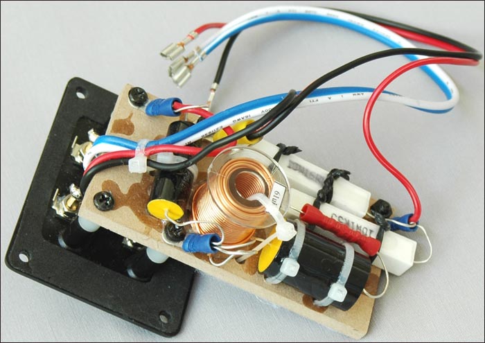 The Features Forensically speaking, this diminutive go-getter includes low diffraction chamfered corners on resonance-controlled cabinets which are finished in high gloss black. Just like some pianos; quite a find at this price. On each box, you'll also uncover a pure aluminum true ribbon tweeter with an acoustically controlled faceplate; and a high performance 4.5" Mogami paper mid/woofer. On the network board, investigations will show that components are crimped, not soldered; and that the gold-plated, large size, high-current binding posts are bi-wire capable. It is noteworthy that the high-pass filtering on the tweeter does not affect the mid/woofer. No grill cloths are provided or required as a metal-mesh cover protects the mid/woofer and the tweeter ribbon is recessed. |