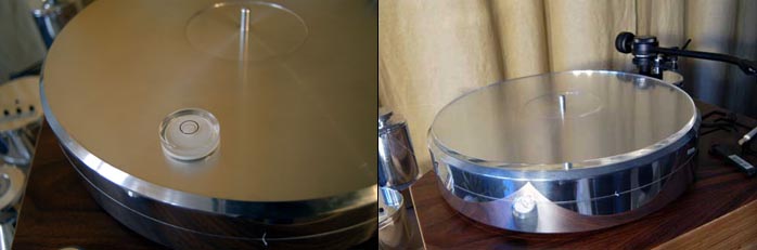 The sliver o' slate is planed perfectly flat to make for a flawless surface coupler. There's even a shallow recess for the record label. So what gives sonically? Your HighEnd DJ spent two days swapping discs: acrylic and slate - plus leather. Sometimes this gig just cracks me up... Sonics With suspended tables, solid slate for a full platter seems prohibitive due to weight. Springs would compress unnecessarily or require beastly counter force. It'll be more useful for high-mass non-suspended getups and platters that are not fully optimized for resonance attenuation. Seeing that fully machined metal platters aren't exactly rare, I can envision their ilk as particular beneficiaries of today's tweak. In my digs, the Slate Damping Mat had two effects. One was obvious and in hindsight easily rationalized, namely better bass. The other wasn't as easily nailed down -- I'd hint at it with altogether more relaxed playback -- and spread out over various nuances. Let's deal with the bass first. I was admittedly a bit surprised, having figured that if this gizmo indeed attenuated self resonance in the aluminum platter, I'd hear the obvious improvements in the presence region and higher. Instead, I was led into the basement. No complaints. I'll not claim a full extra octave of extension but things did go rather louder than with the acrylic disc. |